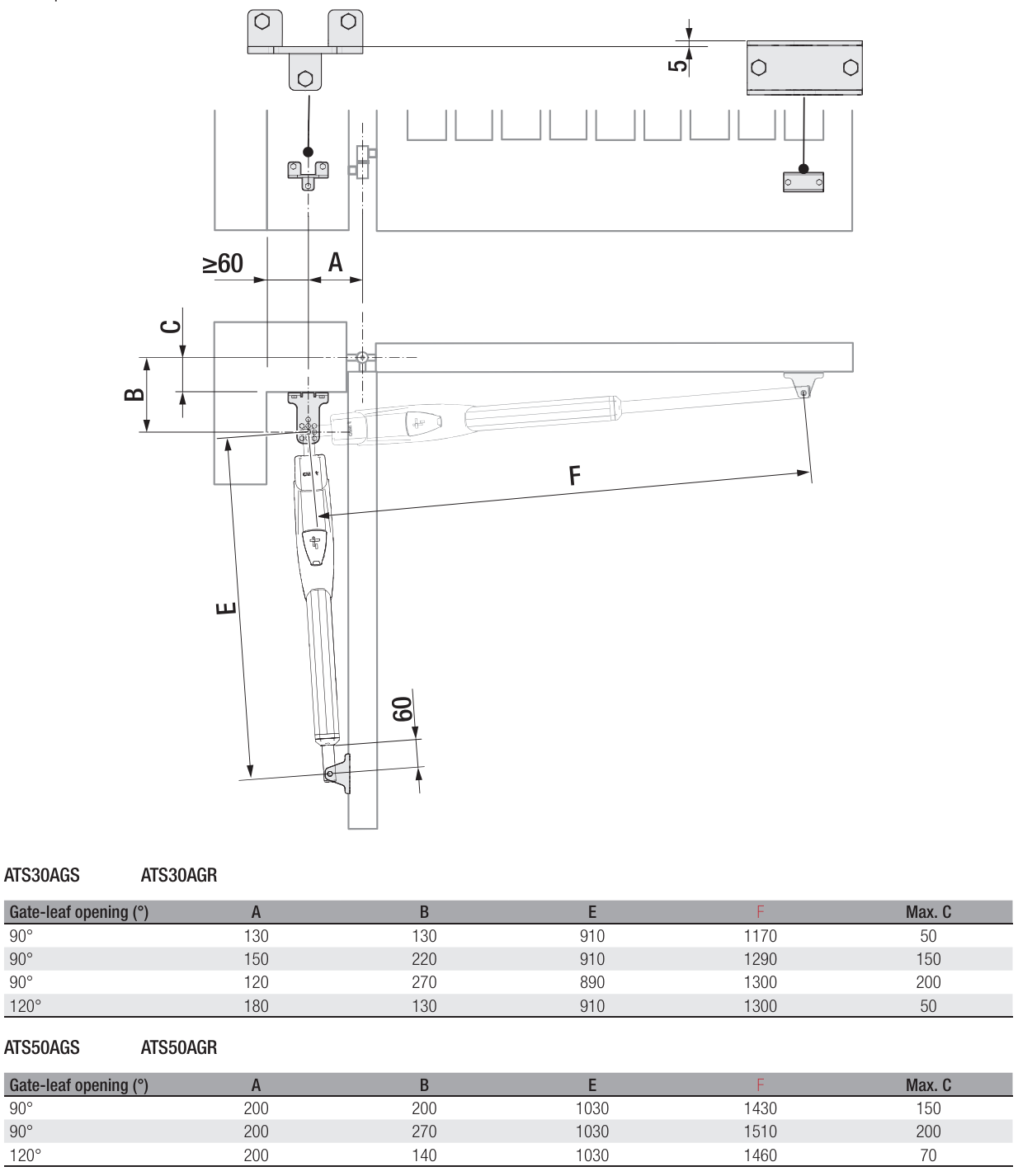Možnosť kotviť pohon na široký stĺpik, vzdialenosť osi pántu krídla brány po hranu stlpika môže byť až 200mm.