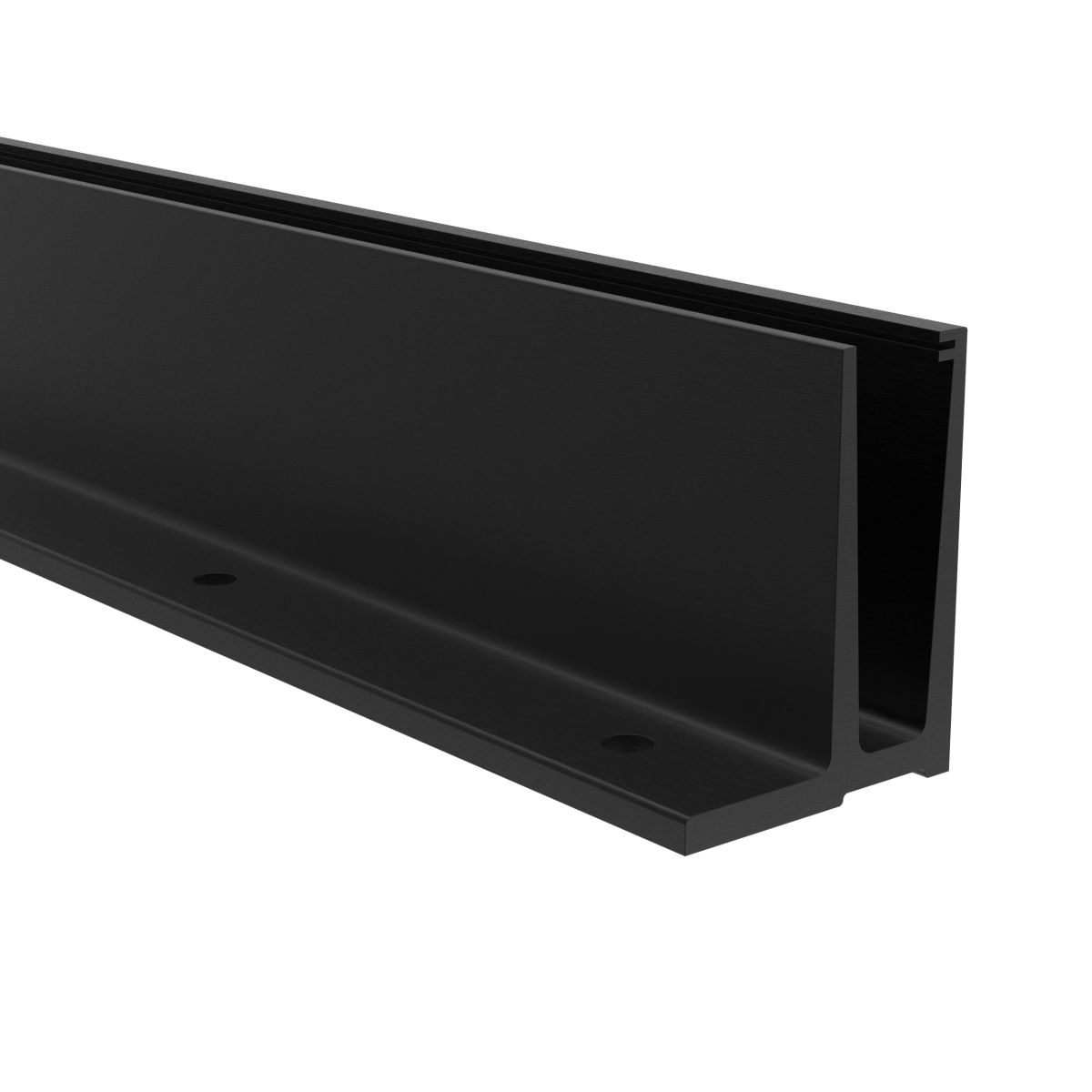 AL kotviaci profil pre sklo, vrchné kotvenie, povrch brúsený, práškovo lakovaný R9005, bez príslušenstva.