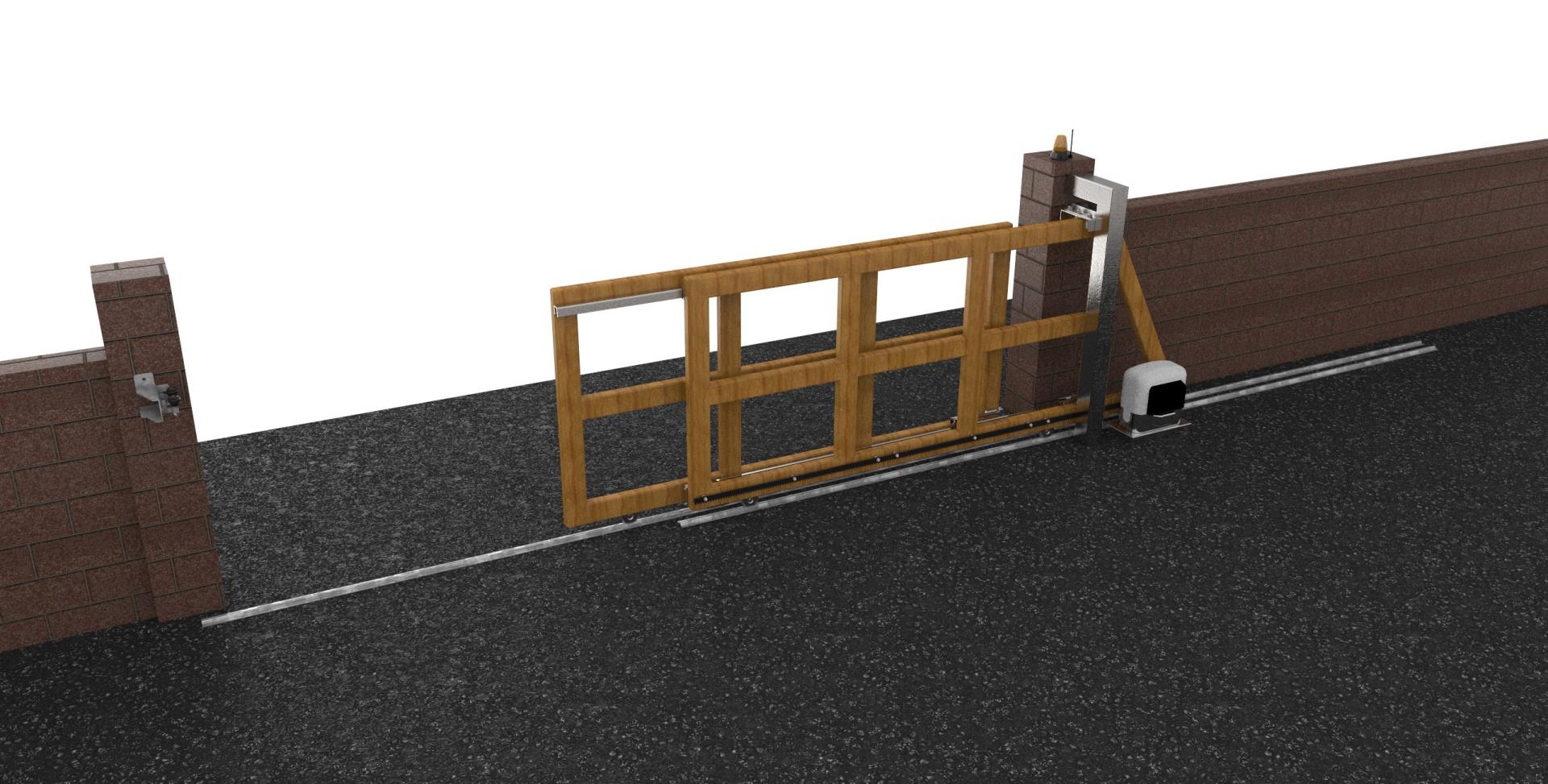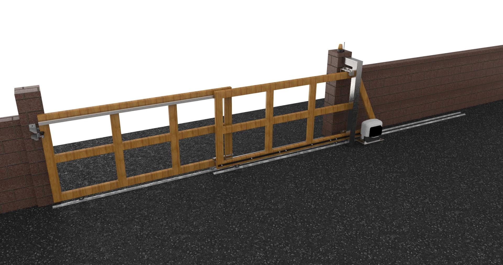 Teleskopický systém pre dvojdielnu kolieskovú bránu s prejazdom do 15m.